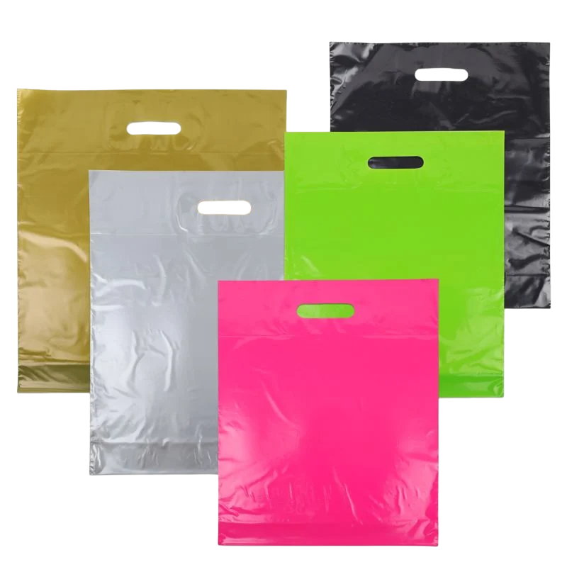 De tassen zijn gemaakt van 50 micron LDPE: een stevig en scheurbestendig materiaal dat zacht aanvoelt in de hand. Verkrijgbaar in meerdere effen kleuren en formaten, en afhankelijk van de maat uitgevoerd met een bodemvouw en/of versterkt handvat.