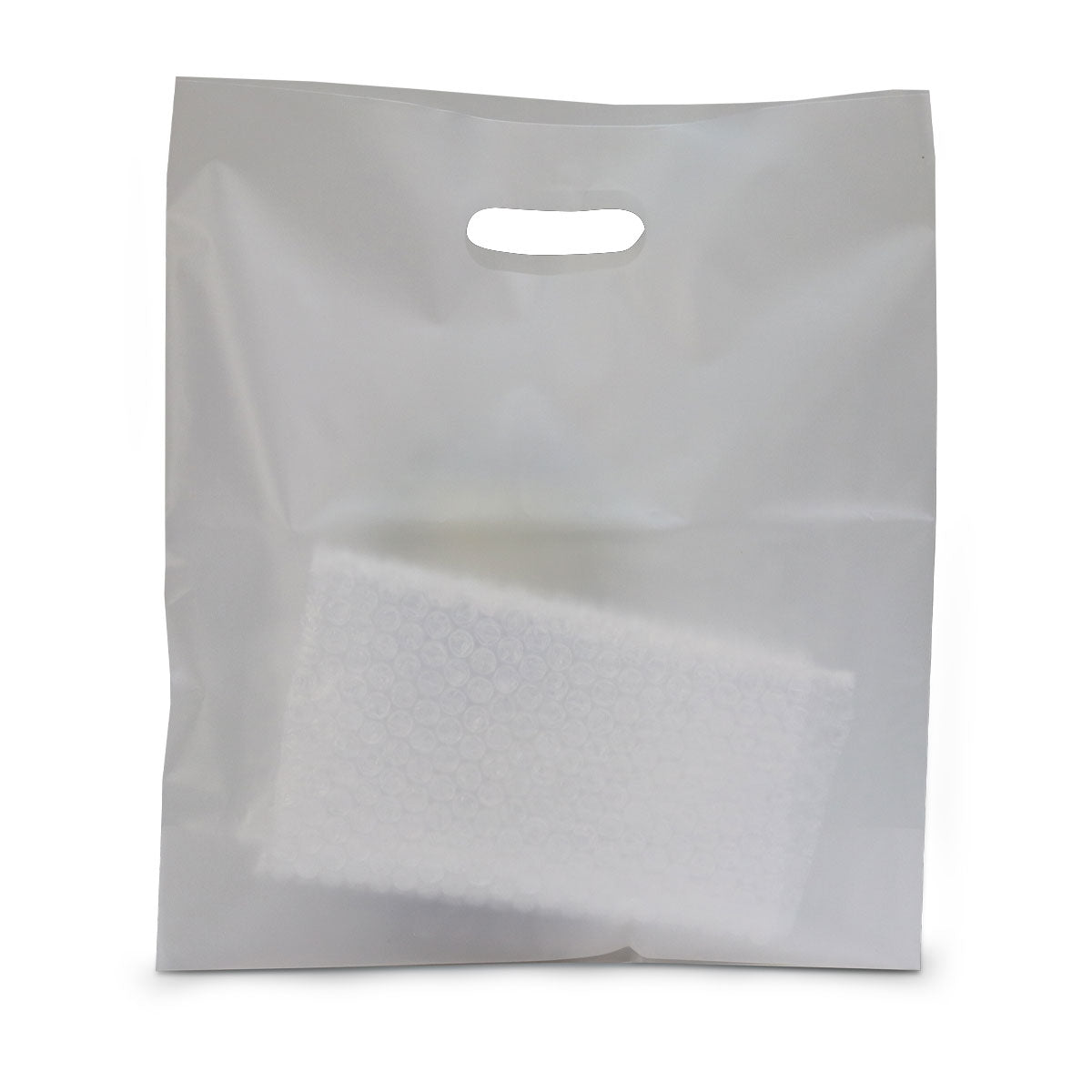 Deze semi-transparante plastic tassen zijn ideaal voor winkels, stomerijen of beurzen die op zoek zijn naar een voordelige verpakking. Het lichte, zachte LDPE-materiaal van 50 micron zorgt voor een prettige grip, terwijl het semi-transparante uiterlijk een verzorgde en eigentijdse look geeft.