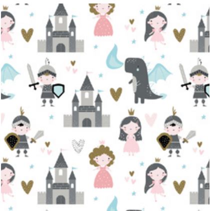 Het sprookje dessin is gedrukt op stevig coated papier en bevat vrolijke illustraties die doen denken aan verhalen vol prinsessen, kastelen en dromen. De coating zorgt voor een subtiele glans en geeft het papier extra stevigheid en luxe.