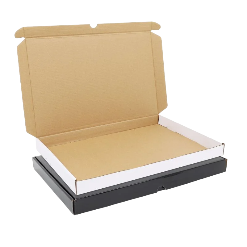 Deze luxe verzenddoosjes zijn vervaardigd van stevig bruin golfkarton (250 grams) en afgewerkt met wit of zwart papier voorzien van een glanzend vernis. Dit zorgt voor een verzorgde presentatie én extra bescherming tijdens transport. Door het slimme formaat passen de doosjes probleemloos door de brievenbus – ideaal voor webshopverzendingen met lage verzendkosten.