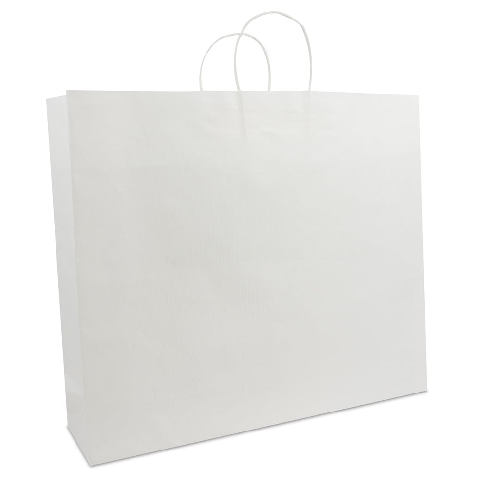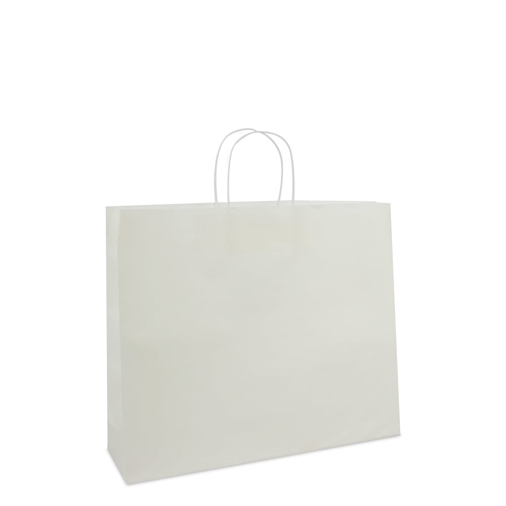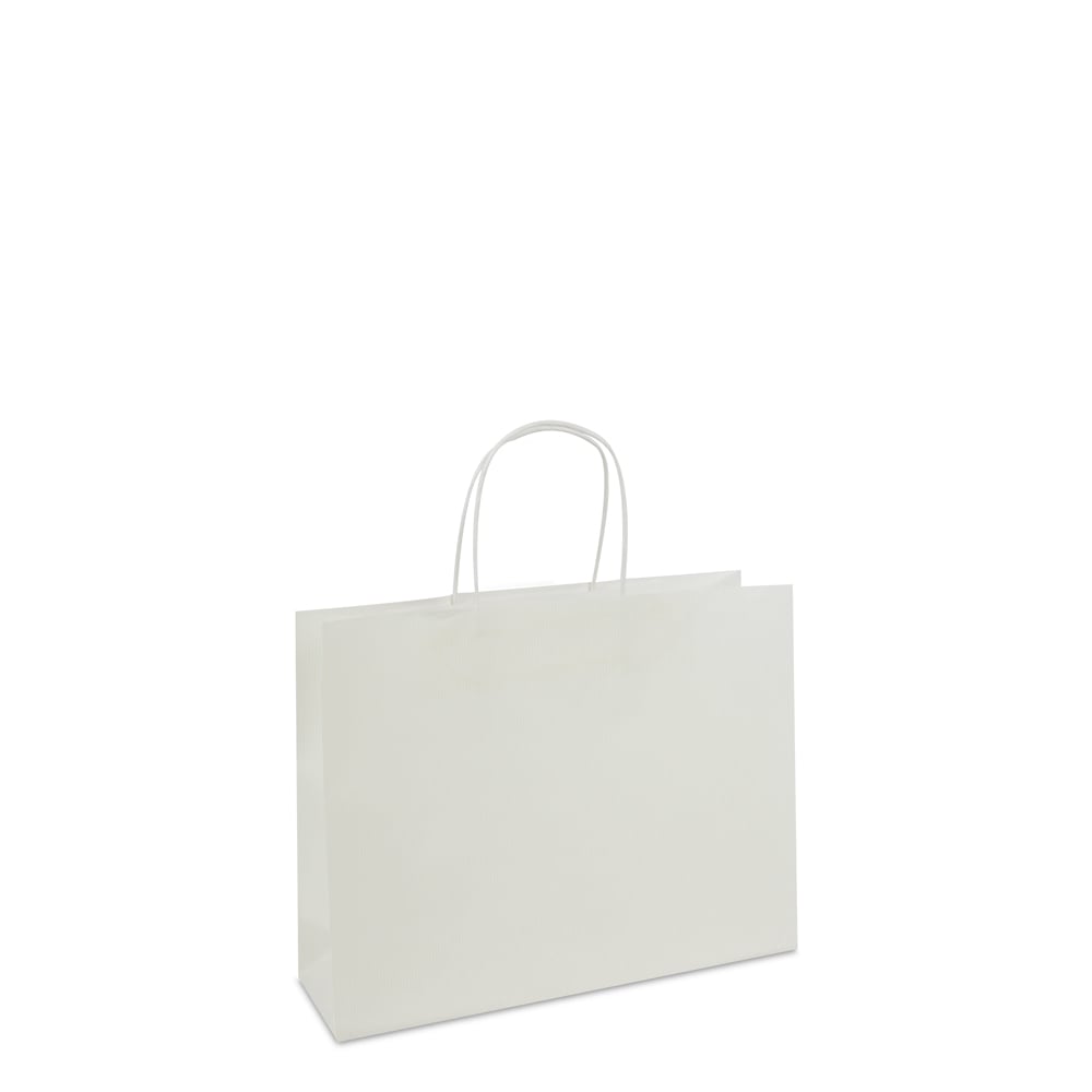 Luxe twisted papieren tassen met bodemkarton - met bedrukking Wit