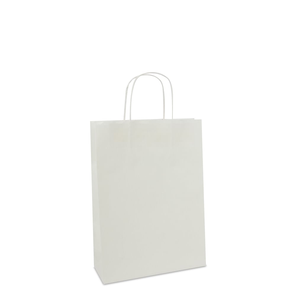 - Dikte papier: Luxe twisted papieren tassen met bodemkarton worden gemaakt van 120 grams wit of bruin gestreept kraft papier. Beide papiersoorten zijn onbewerkt en hierdoor ecologisch te noemen.